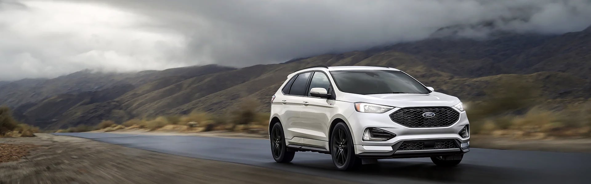 The Edge SEL includes 18-inch wheels, a gray lower front bumper, black roof racks, mirror caps, and grille bars. The Edge ST-LINE features 20-inch wheels, black beltline moldings, unique front and rear fascias, and LED lighting with bezels. The Edge TITANIUM comes with 20-inch aluminum wheels and various exterior colors and material upgrades. The EDGE ST trim includes 21-inch wheels, vented front and rear brake rotors, and red-painted brake calipers.