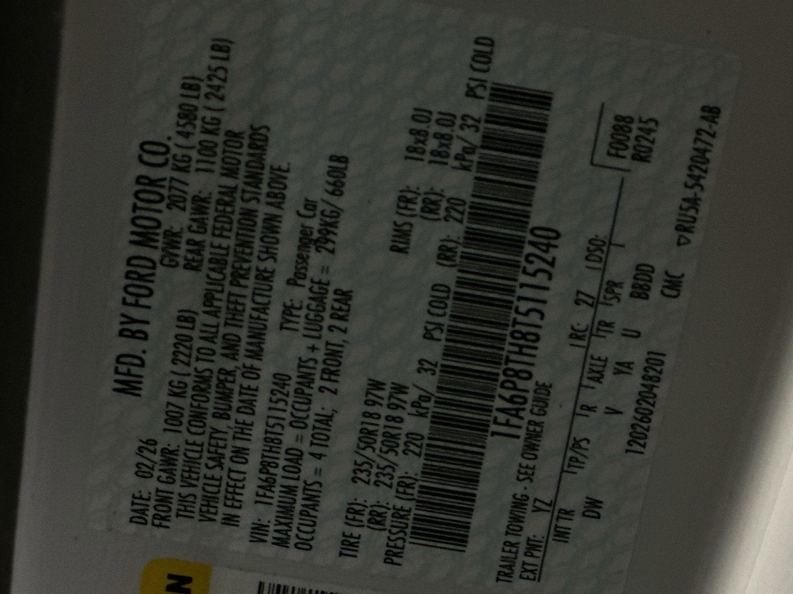 - Front Tire Size: P235/50WR18