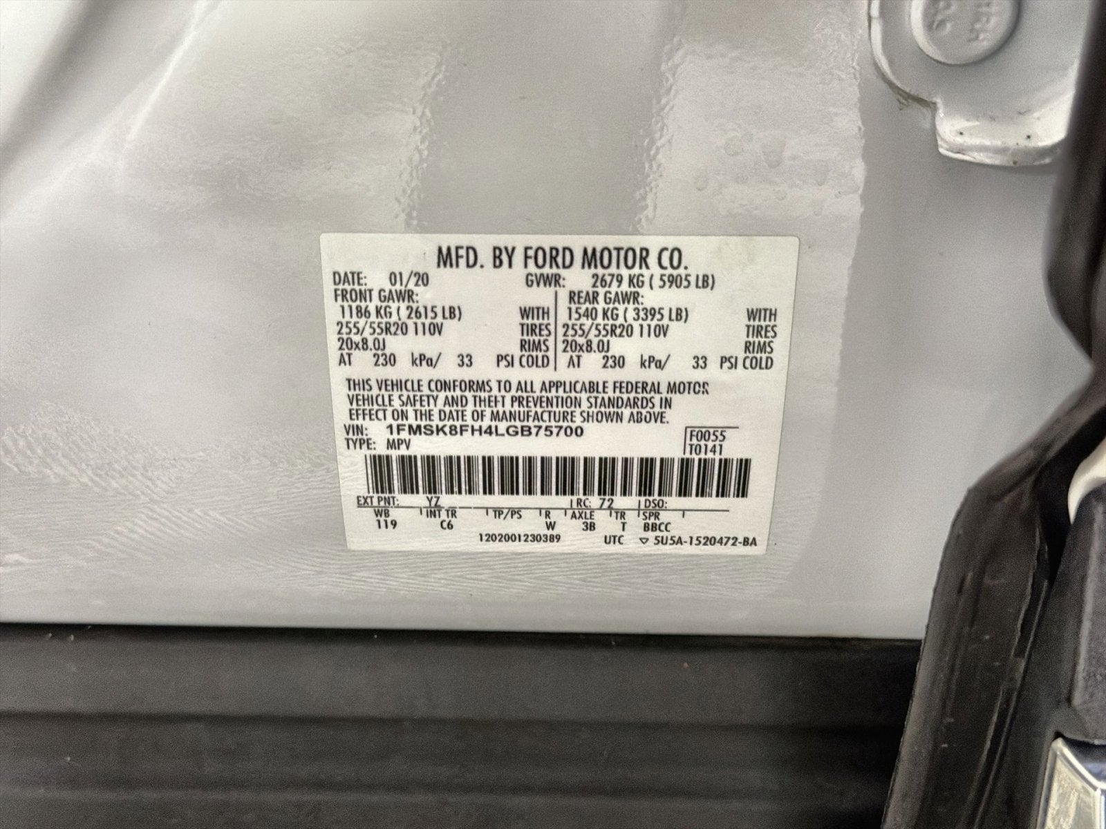 - Front Tire Size: P255/55HR20
