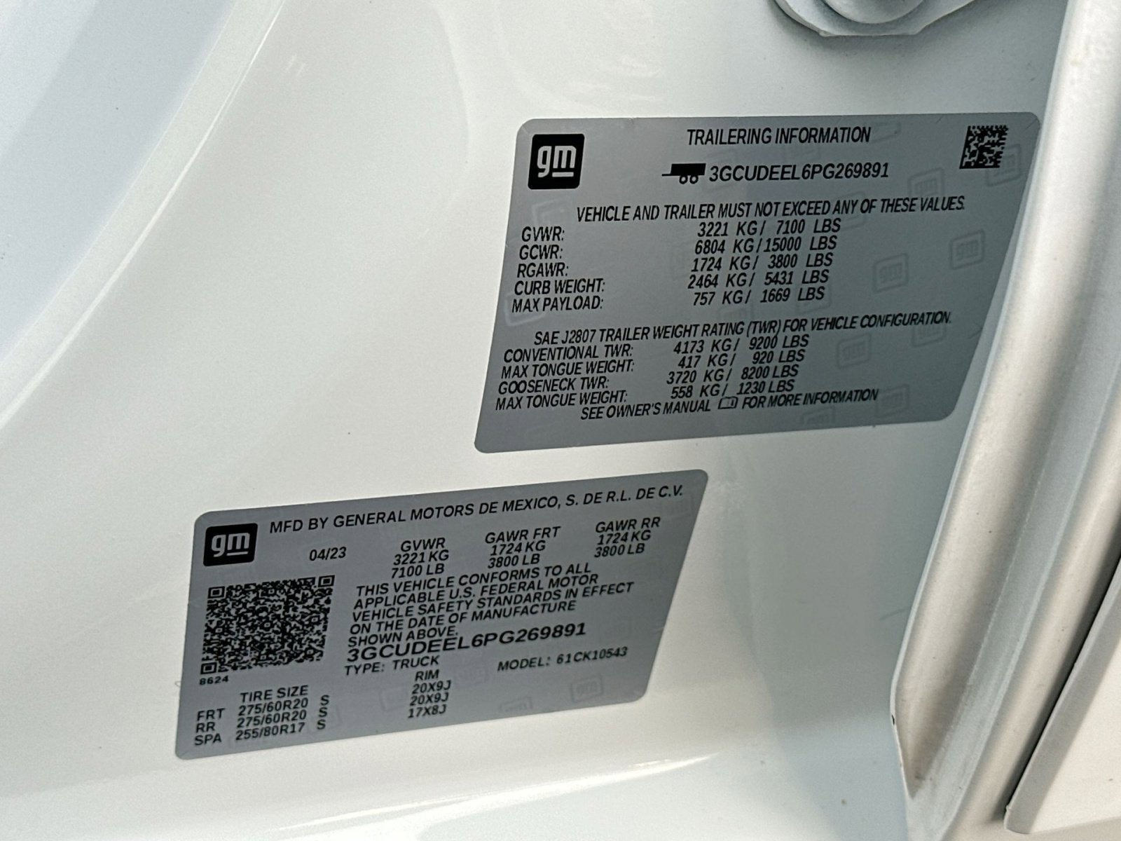 - Front Tire Size: 275/60R20SL