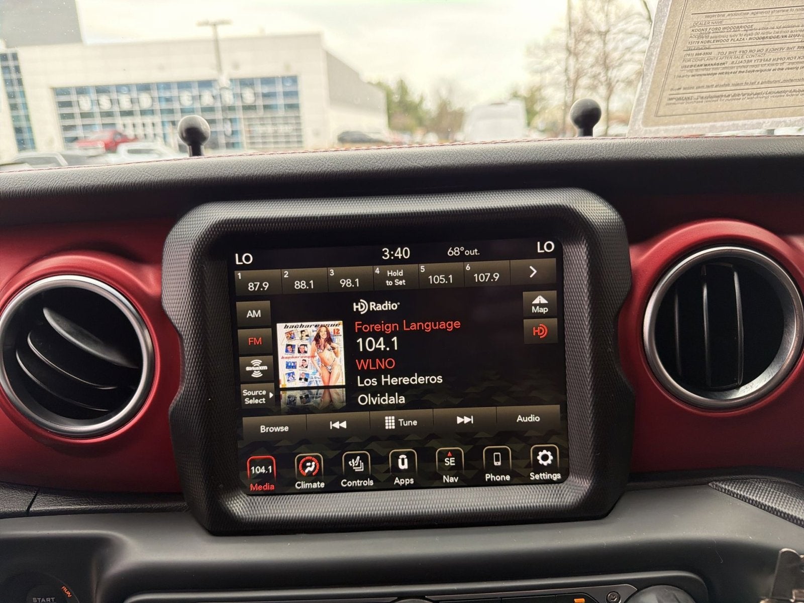 - Radio w/Seek-Scan, Clock, Speed Compensated Volume Control, Aux Audio Input Jack, Steering Wheel Controls, Voice Activation, Radio Data System and Uconnect External Memory Control